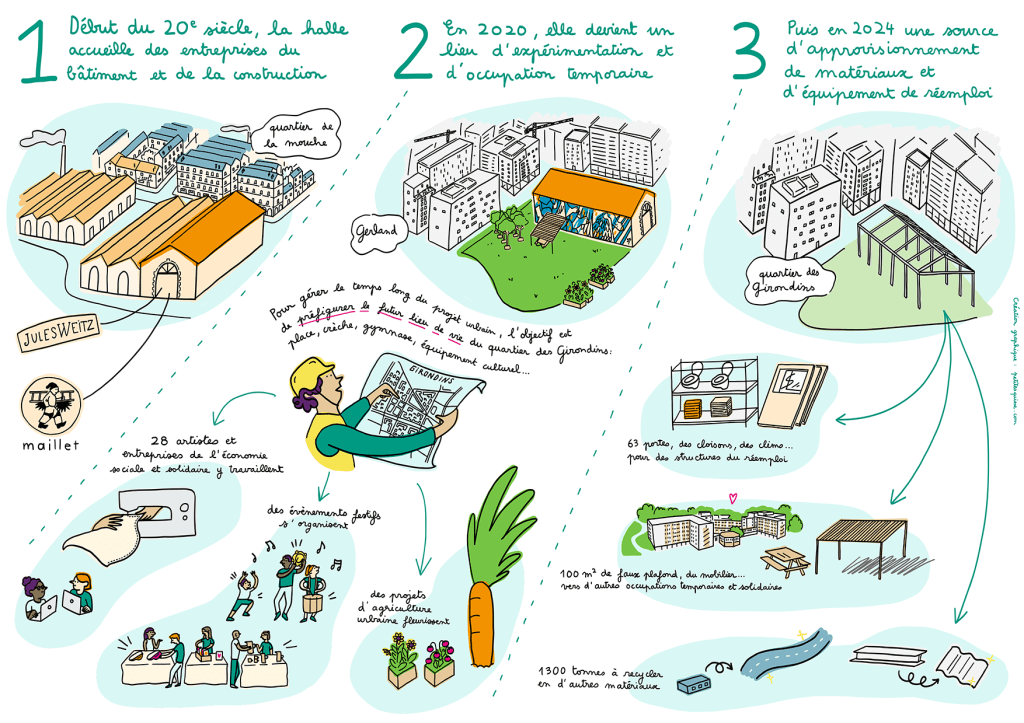 En 2024, le Groupe SERL m’a demandé de mettre en image l’histoire d’une halle d’activité qui se trouve au cœur d’un de leurs projets d’aménagement : depuis ses heures commerciales, en passant par son occupation temporaire jusqu’au réemploi de ses équipements et matériaux.