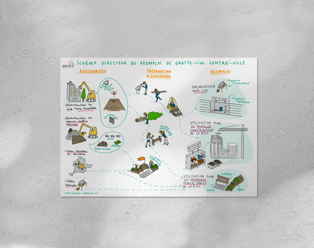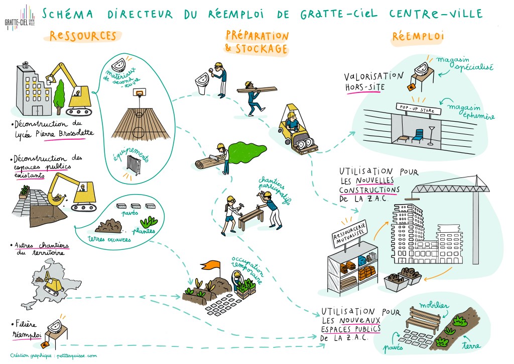 Illustration du schéma directeur de réemploi de Gratte-Ciel Centre-Ville à Villeurbanne.